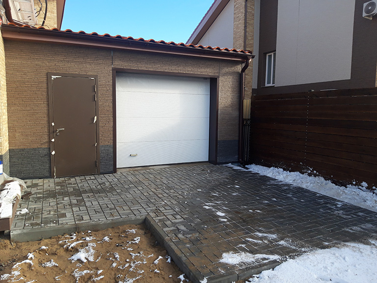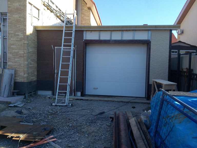 Финальные работы по обустройству гаража - монтаж дверей, секционных ворот и окон. На этом этапе мы используем проверенную временем и российскими потребителями продукцию фирмы Doorhan. В качестве въездных наши специалисты устанавливают секционные ворота. Эта конструкция состоит из панелей, скрепленных петлями. Она поднимается и опускается благодаря направляющим шинам, полностью скрытым от глаз. Производитель предусмотрел 25 тысяч ее подъемов и опусканий.