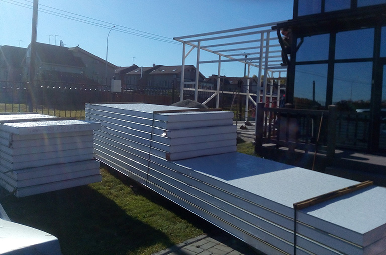 Для монтажа каркаса используется профильный трубный прокат. Диаметр сечения и количество металла, необходимого для производства труб, рассчитываются индивидуально, еще при подготовке проекта. Сколько ферм и какой толщины потребуется для конструкции, на каком расстоянии друг от друга они будут стоять - всё это зависит от наклона кровли.